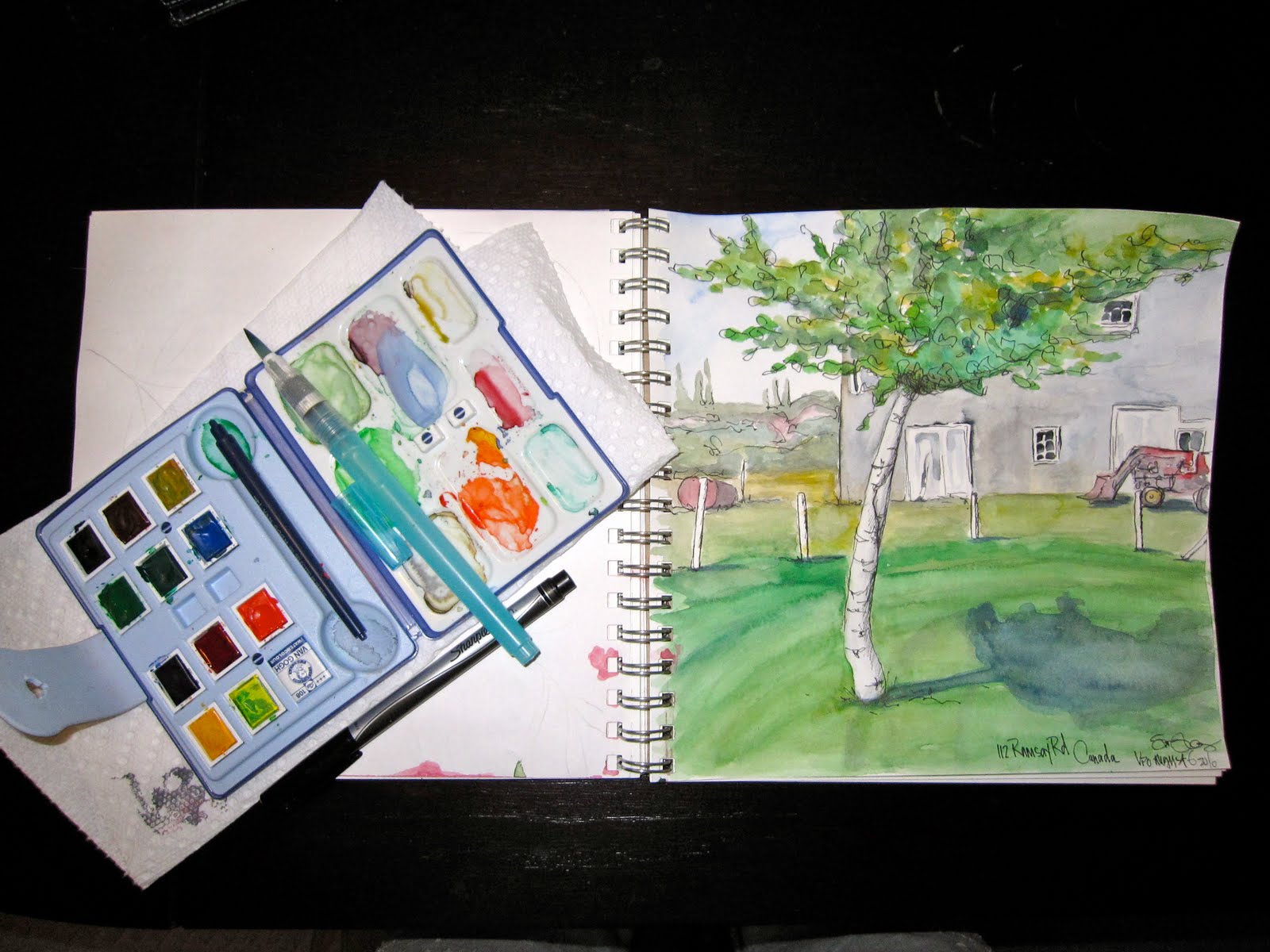 I made myself sit at the desk, in front of a view I liked and paint, with my sketchbook, just like I was there, except I got to do laundry while I worked. Guess what? I finished.