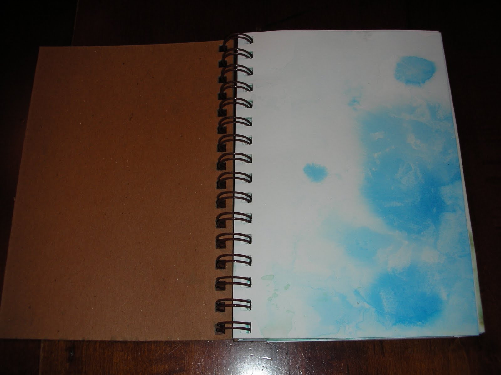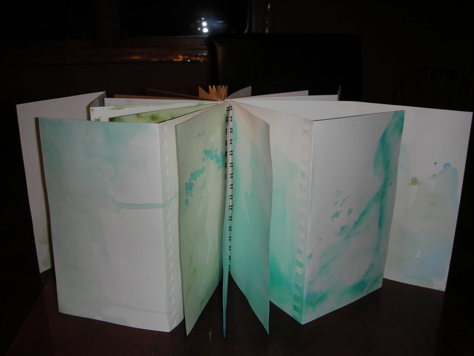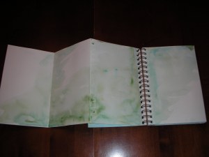 Finally, I prepainted the pages with liquid acrylic washes in green/blue/yellow. I have to say I am quite happy with the book now and looking forward to using it.
