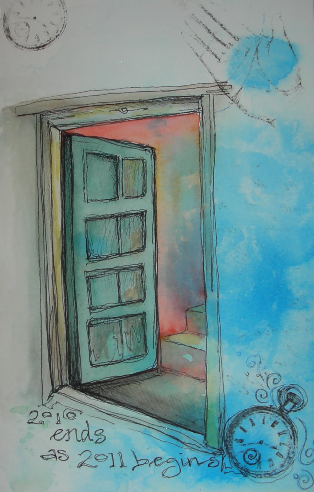 For the first time in a year I will be working in two journals at once, one where I will primarily draw and paint and one where I will be experimenting and trying some new stuff. The image above is from the new journal (see previous post about altering a purchased journal). Not much of an experiment, a drawing with watercolor and some Chartpak marker transfers. I am still up in the air on whether or not I think this page is complete. I do not like the words I added, so I am contemplating adding some collage paper over the text. I am also not working in this journal in order, because of the alterations, I have different sized pages to choose from so I am going to be jumping around a bit to fit what I need onto the page that will work best.