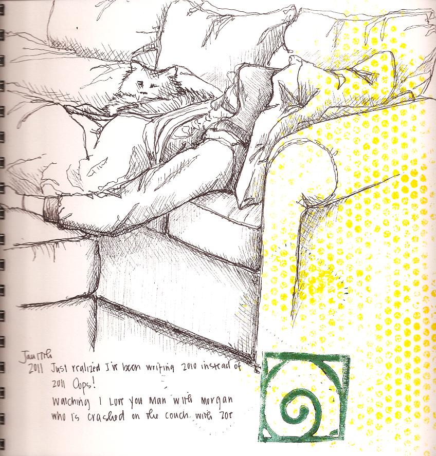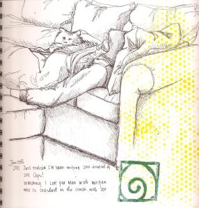 The Sketchbook Challenge theme for the month of January is “Highly Prized”. On Monday, we (my daughter and I) had a day at home. We hung out on the couch together watching silly movies, wrapped in blankets, with the dog at my feet and the cat on her lap.