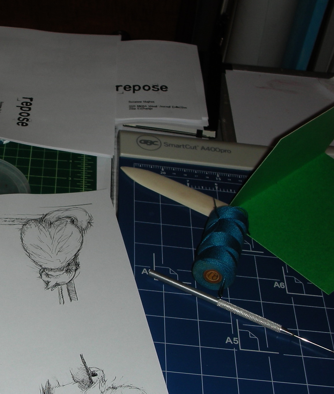 For this month’s meeting of the MCBA Visual Journal Collective, we had a zine exchange. For the exchange each artist had to create and make copies of their zine to share with the group. Now if you are confused, a zine is a tiny book or magazine that is created using a single sheet of regular copy paper with content that you as the zine artist create (for an instruction sheet on layout see Roz Stendahl’s blog here).