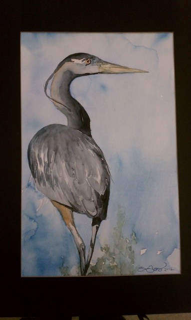 | Heron painted in my classroom as an ongoing demo on watercolor painting |