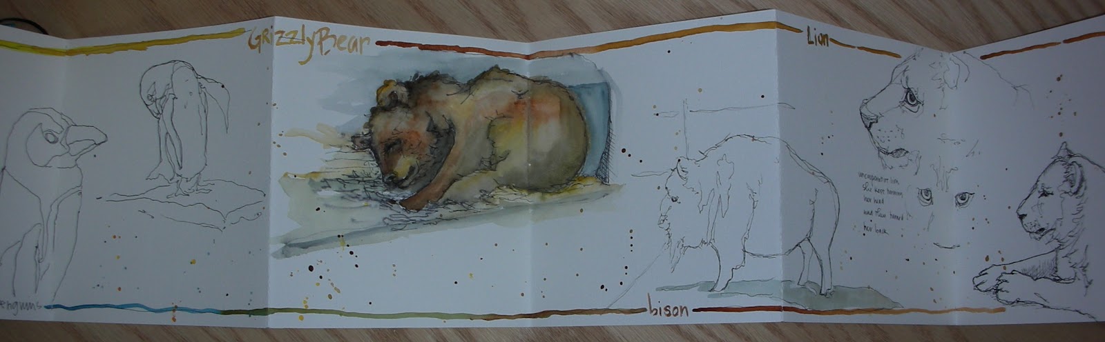 I have to say I had one of those rare sketching days that does not come along often and it seemed that every drawing I did came out reasonably well. The lion was by far the most challenging subject because she was agitated when we first got to sketching her, so my first two attempts are just eyes mostly. Then she settled down and stayed stationary for a while and I was able to finish a sketch of all of her rather than just her eyes.