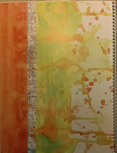 We’ll see what a page was like originally (my background empty below on the left) and then we’ll see what each member of the project did to that page (my completed journal page below on the right).