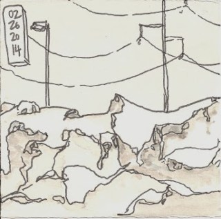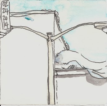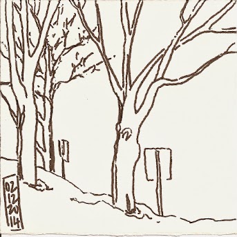 These little papers have ben particularly fun to sketch on when I first arrive at work, sketching for only about ten minutes whatever I see out my front windshield.
