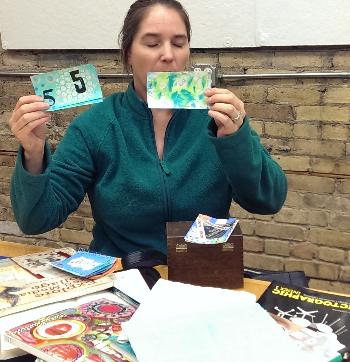 Molly also shared examples from her index card a day project that she is working on. Her layered colors and visual textures are wonderful.