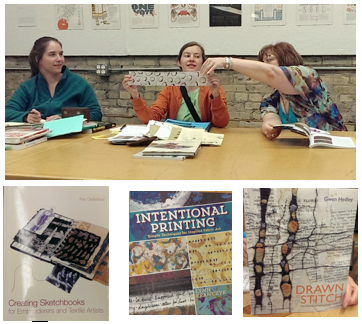 delightful fabrics and textile art. Her book recommendations reflect her shift toward textiles and exploration of pattern and fabrics. Her book list included: “Intentional Printing” by Lynn Krawczyk for its detailed information on printing techniques for fabrics, “Drawn to Stitch” by Gwen Headley, and “Creating Sketchbooks for Embroiderers” by Kay Greenlees. She has also been following the work of Dorothy Caldwell, a textile artist, online.
